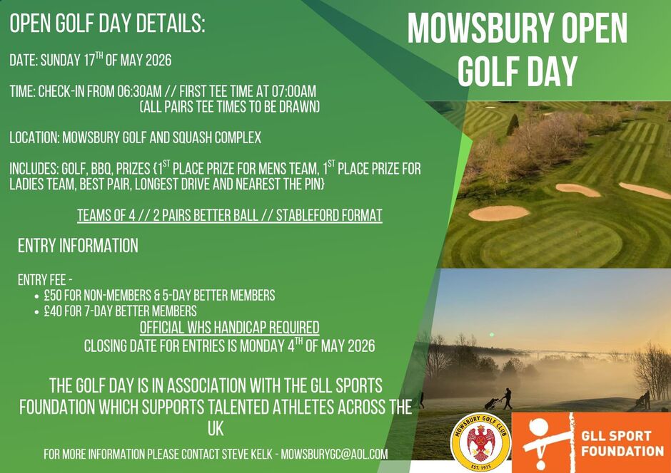 Mowsbury GC will be holding their open day on Sunday 17th May. It follows on from the very successful event held last year (their 50th year). See the detail below and get your teams entered.